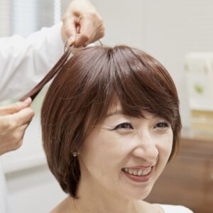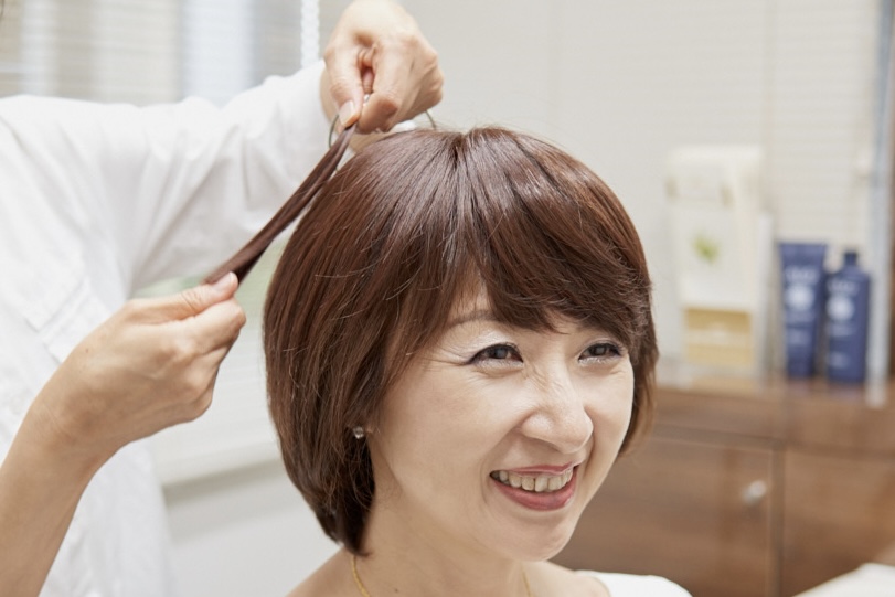顔まわり・レイヤー・馴染ませカットで「ウィッグだと気づかれない仕上がり」へ導きます。