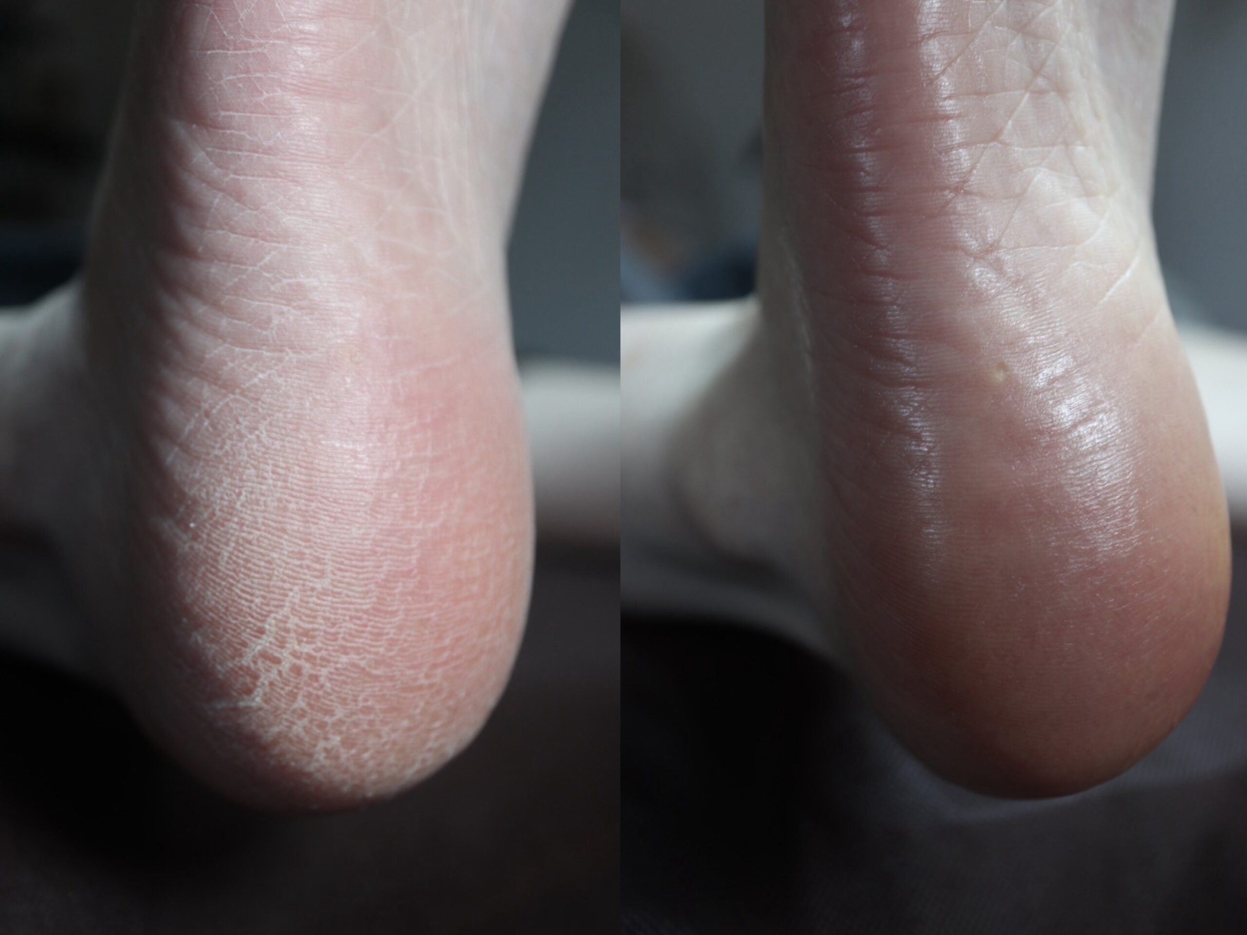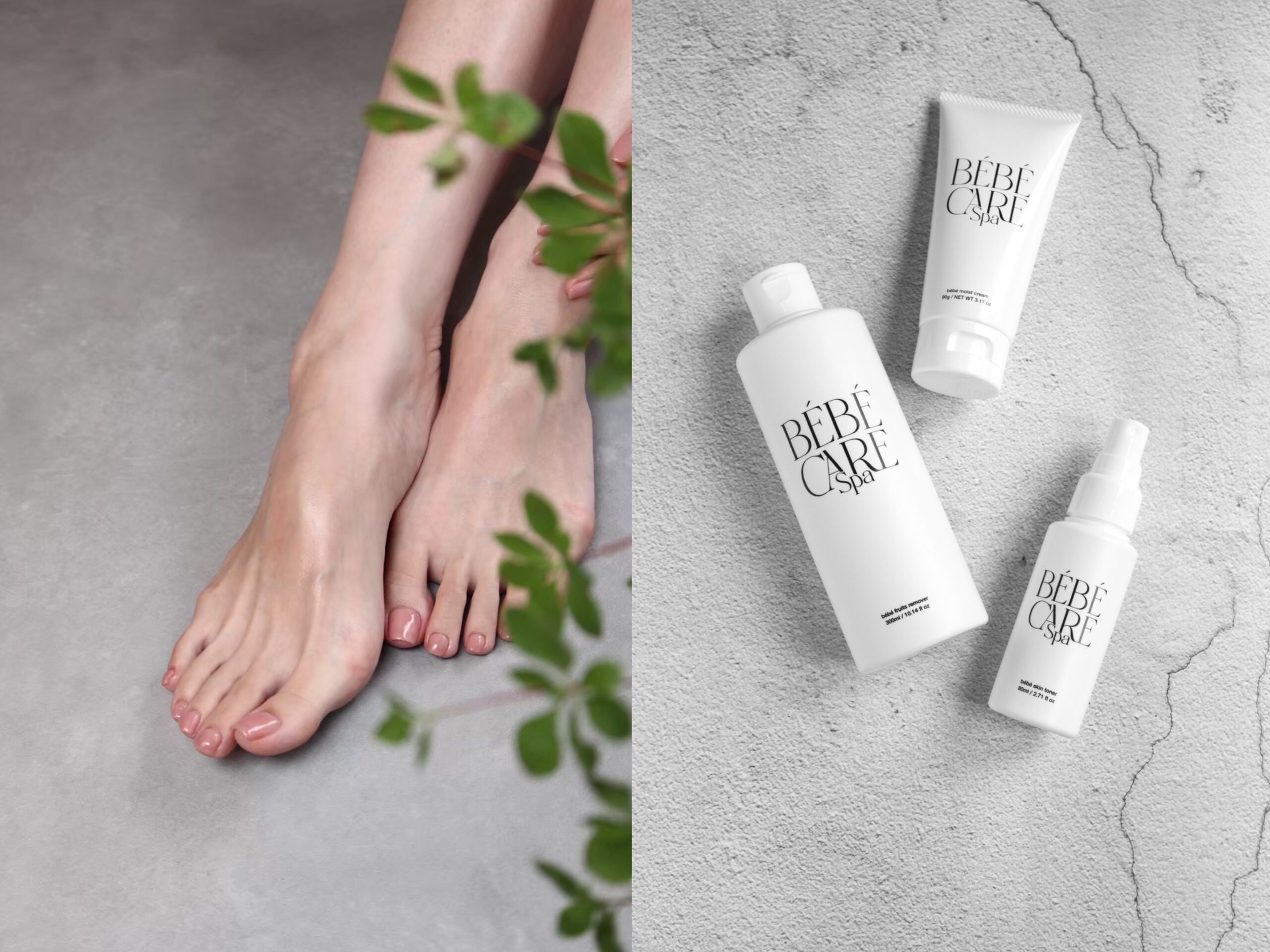 bebeトナーを使用して、かかとだけでなく、指周りも丁寧にケアします。